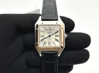 17325760 F1공장 까르띠에 산토스 뒤몽 43.5mm 로즈골드콤비 실버다이얼 블랙가죽스트랩