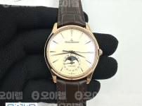 12004959 APS공장 예거르쿨트르 마스터 울트라씬 문페이즈 로즈골드금통 화이트다이얼 브라운가죽스트랩