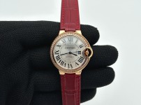 01270359 AF공장 까르띠에 발롱블루 33mm 로즈골드금통 다이아케이스 실버다이얼 레드가죽스트랩