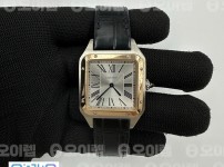 10391846b XF공장 까르띠에 산토스 뒤몽 27.5 로즈골드 콤비 실버다이얼 가죽스트랩