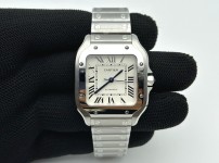 17403260 BV공장 까르띠에 산토스 2018 미디움 스틸 화이트다이얼 스마트링크브레이슬릿
