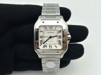 09214628 BV공장 까르띠에 산토스 2018 미디움 스틸 화이트다이얼 스마트링크브레이슬릿