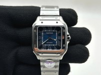 09114883A F1공장 까르띠에 산토스 뒤몽 43.5mm 실버다이얼 블루가죽스트랩