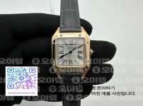 20053776 F1공장 까르띠에 산토스 뒤몽 라지 38mm 로즈골드금통 실버다이얼 블랙가죽스트랩