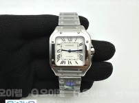 23350910 BV공장 까르띠에 산토스 2018 미디움 스틸 화이트다이얼 스마트링크브레이슬릿