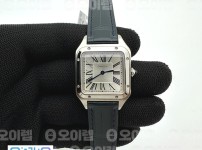 12530526 F1공장 까르띠에 산토스 뒤몽 라지 38mm 실버다이얼 블루가죽스트랩
