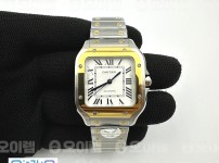 09451142 BV공장 까르띠에 산토스 드 까르띠에 2018 미디움 옐로우골드 콤비 화이트다이얼 스마트링크…