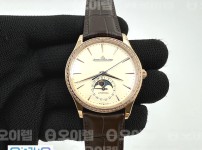 14273212 APS공장 예거르쿨트르 마스터 울트라씬 문페이즈 로즈골드금통 보석베젤 화이트다이얼 브라운가죽…