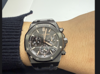 APS 오데마피게 로얄오크 크로노그래프 좋네요 크로노 그래프 정상작동하고 전면 및 후면 글라스는 사파이어 크리스탈로 확인이 되네요 클론무브라 후면 케이스백도 좋고요 ..