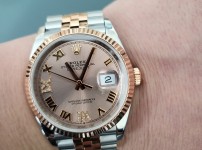 롤렉스 데이트저스트 36mm (옐로골드콤비, 화이트로만다이얼, 플루티드베젤, 주빌리브레이슬릿) 한달 반쯤 전 자개다이얼로 하나 샀는데 너무 맘에 들어서 아버지 선물로도 하나 샀습니다 ㅎ 정말 예쁘네요 근데 확실..