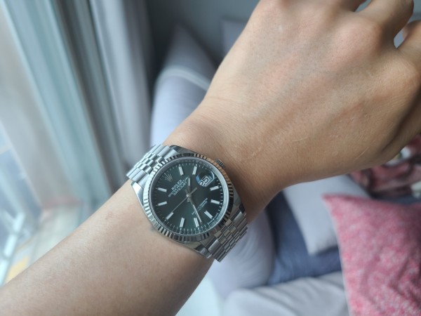 항상 41mm 시계만 착용하다가 36mm를 처음 껴보니 어색했으나, 몇일 지나니 딱 좋은 사이즈입니다(제 손목 17~17.5cm)