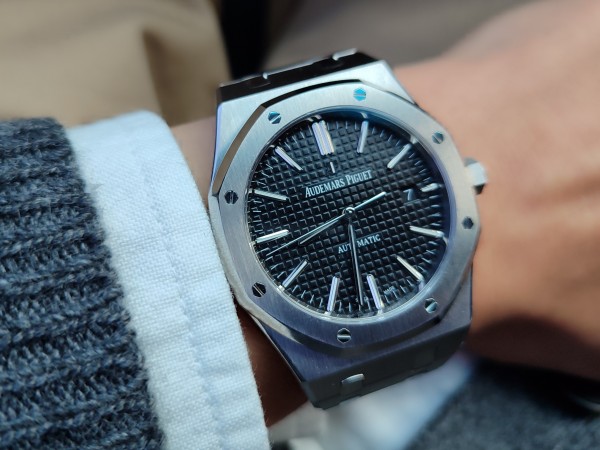 가장 최근에 들인 녀석입니다. 내구성과 마감을 중시해서 VS와 클린사 제품만 고집해왔으나, 로얄오크의 디자인은 도저히 포기할 수 없더군요. 브레이슬릿부터 다이얼까지 이어지는 빛의 흐름은 역시 독보적입니다. 40mm 사이즈였다면 제게 인생 시계가 되었겠지만, 현재로도 충분히 압도적인 존재감을 보여줍니다
