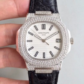 DM공장 파텍필립 노틸러스 점보 5719 풀다이아몬드 화이트다이얼 가죽스트랩