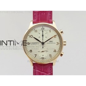 • ZF공장 IWC 포르투기저 크로노그래프 PORTUGUESE IW3714 RG CASE DIAMOND WHITE DIAL RG NUMERAL ON DARK PINK LEATHER STRAP A79350 (SLIM MOVEMENT)