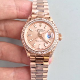 SY공장 롤렉스 레이디 데이저스트28 로즈골드금장 다이아베젤 핑크다이얼 바인덱스 프레지던트브레이슬릿