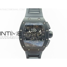 KU공장 리차드밀 RM011 풀세라믹 스켈레톤 크로노그래프 RM011 CERAMIC CHRONOGRAPH CRYSTAL SKELETON DIAL BLACK ON BLACK RUBBER STRAP A7750 KV공장
