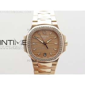 • PF공장 파텍필립 노틸러스점보 레이디 7118 로즈골드금통 다이아몬드베젤 로즈골드다이얼 NAUTILUS JUMBO LADIES 7118 RG TEXTURED DIAL DIAMOND BEZEL ON RG BRACELET A324 CLONE