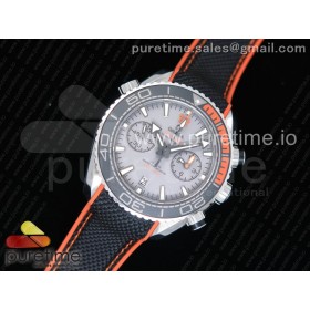 OM공장 V2 오메가 씨마스터 크로노그래프 스틸 그레이다이얼 오렌지인서트 직물스트랩 Planet Ocean Master Chronometer SS Black/Orange Polished Bezel Gray Dial on Black Nylon Strap A9900 (Black Balance Wheel) V2