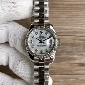 WF공장 롤렉스 레이디 데이저스트26 실버 다이아몬드베젤 자개다이얼 텐포인트인덱스 프레지던트브레이슬릿