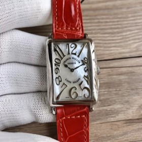 프랭크뮬러 롱아일랜드 스틸 화이트자개다이얼 실버양각인덱스 오렌지엘리스트랩