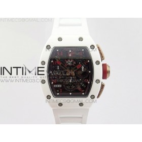 • KU공장 리차드밀 RM011 크로노그래프 로즈골드금장케이스 화이트세라믹베젤 스켈레톤다이얼 화이트러버스트랩 RM011 RG CASE CHRONOGRAPH WHITE CERAMIC BEZEL SKELETON DIAL ON WHITE RUBBER STRAP A7750 KV공장