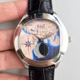 피아제 엠페라도 쿠썽 문페이즈 미티컬 저니 스틸 가죽스트랩 Emperador Coussin Moonphase Mythical Journey SS on Black Leather Strap A860P > 피아제뒤로