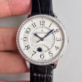 • JL공장 예거르쿨트르 2018년 여성용 랑데뷰 나잇앤데이 34mm 스틸 다이아몬드셋팅 화이트텍스쳐다이얼 가죽스트랩