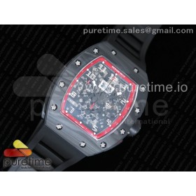 KV공장 리차드밀 RM011 NTPT 카본크로노 스켈레톤 레드이너베젤 블랙러버스트랩 RM011 NTPT Carbon Chrono Crystal Skeleton Dial Red Inner Bezel on Black Rubber Strap A7750