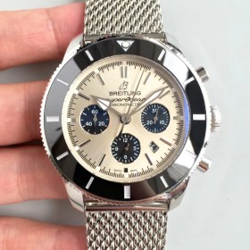 브라이틀링 슈퍼오션 44mm 크로노그래프 스틸 실버다이얼 매쉬스트랩