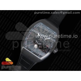 • TF공장 프랭크뮬러 뱅가드 V45 DLC블랙케이스 블랙다이얼 가죽스트랩 VANGUARD V45 DLC BLACK DIAL ON BLACK GUMMY STRAP A2892