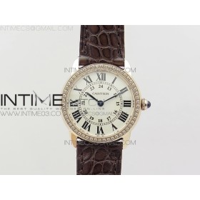 K11공장 까르띠에 롱드솔로 29MM 핑크골드&다이아케이스 화이트다이얼 브라운가죽스트랩 RONDE SOLO DE CARTIER 29MM RG/DIA WHITE DIAL ON BROWN CROCO LEATHER STRAP RONDA QUARTZ