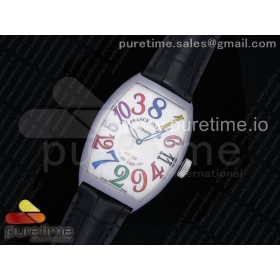 OX공장 프랭크뮬러 크레이지아워 점핑아워무브먼트 스틸 화이트다이얼 컬러풀마커 가죽스트랩 Crazy Hours Real Jumping Hour SS White Dial Colorful Markers on Black Leather Strap A23J