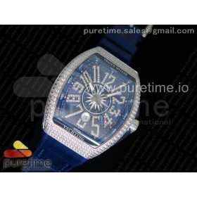OX공장 프랭크뮬러 뱅가드 V45 스틸 풀다이아몬드케이스 블루텍스쳐다이얼 블루거미스트랩 Vanguard V45 SS Full Diamonds Blue Textured Dial Diamonds Markers on Blue Gummy Strap A2824