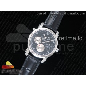 K11공장 바쉐론콘스탄틴 말테 듀얼타임 레귤레이터 스틸 블랙다이얼 가죽스트랩 Malte Dual Time Regulator SS Black Dial on Black Leather Strap A23J