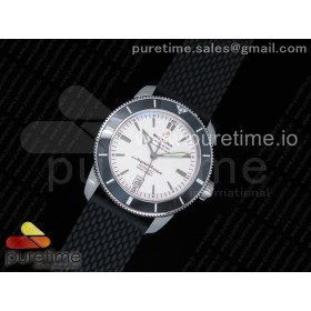 OM공장 브라이틀링 슈퍼오션 헤리티지2 스틸 화이트다이얼 블랙베젤 러버스트랩 SuperOcean Heritage ii 42mm SS White Dial Black Bezel on Black Rubber Strap A2824 (Free Rubber Strap)