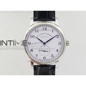 MK공장 아랑에운트죄네 클래식 레귤레이터 스틸 화이트다이얼 아라빅인덱스 가죽스트랩 CLASSIC REGULATOR SS WHITE DIAL NUMBER MARKERS SEC@6 ON BLACK LEATHER STRAP A74789 > 아랑게 운트 죄네뒤로