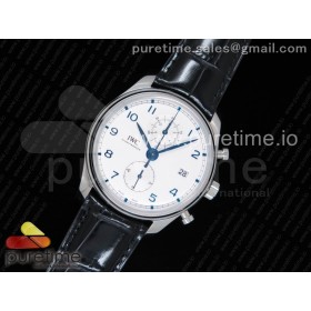• YL공장 IWC 포르투기저 크로노 클래식 42 스틸 화이트다이얼 블루핸즈 가죽스트랩 IWC Portugieser Chrono Classic 42 IW3903 White Dial Blue Markers on Black Leather Strap A7750