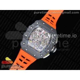 KU공장 리차드밀 RM011 카본케이스 크로노 크리스탈스켈레톤 옐로우다이얼 오렌지레이싱러버스트랩RM011 Carbon Case Chrono Crystal Skeleton Yellow Dial on Orange Racing Rubber Strap A7750 KV공장