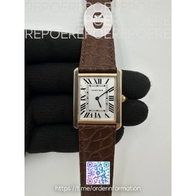 • AF공장 까르띠에 탱크솔로 27 라지 로즈골드금장 화이트다이얼 가죽스트랩 TANK SOLO LADIES 27MM RG WHITE DIAL ON BROWN LEATHER STRAP RONDA QUARTZ