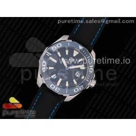 OX공장 태그호이어 아쿠아레이서5 스틸 43MM 싱글블루 Aquaracer Calibre 5 SS 43mm Ceramic Bezel Black Dial "Single Blue" on Nylon Strap SW200