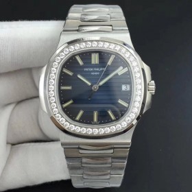 PF공장 V2 파텍필립 노틸러스 점보 5711 스틸 블루다이얼 다이아몬드베젤 브레이슬릿 Nautilus Jumbo 5711 Blue Textured Dial Diamonds Bezel on SS Bracelet A324 Clone