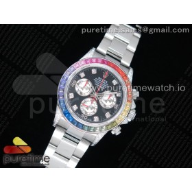 JH공장 롤렉스 데이토나 레인보우 바게트베젤 블랙다이얼 Daytona 116599RBOW SS Rainbow Crystal Black Dial on SS Bracelet A4130