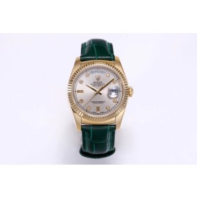 • TR공장 롤렉스 데이데이트 36 옐로우골드 금통 실버다이얼 가죽스트랩