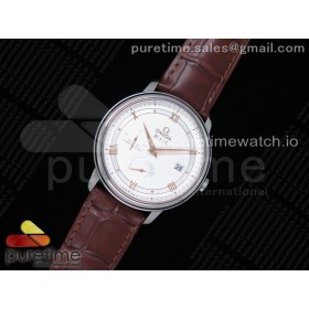 ZF공장 오메가 드빌 프레스티지 파워리저 화이트다이얼 가죽스트랩 De Ville Prestige Real PR SS White Dial RG Hands on Brown Leather Strap MIYOTA 9015