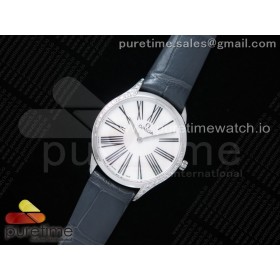 오메가 드빌 트레소르 퀴츠 화이트다이얼 가죽스트랩 De Ville Tresor Quartz 36mm Ladies SS White Dial Black Markers on Black Leather Strap Ronda Quartz