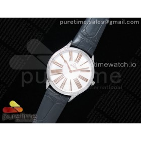 오메가 드빌 트레소르 퀴츠 화이트다이얼 가죽스트랩 De Ville Tresor Quartz 36mm Ladies SS White Dial Gold Markers on Black Leather Strap Ronda Quartz