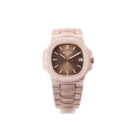 • R8공장 파텍필립 노틸러스 로즈골드 금통 브라운다이얼 풀다이아몬드 파베