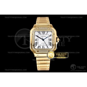 BV공장 까르띠에 산토스 드 까르띠에 2018 미디움 옐로우골드 금통 화이트다이얼 스마트링크브레이슬릿 Santos De Cartier Ladies 35mm Diams YG/YG BVF MY9039