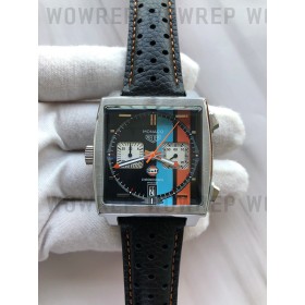 태그 모나코 쿼츠 블랙다이얼 가죽스트랩