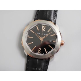 • BV공장 불가리 옥토 로즈골드 콤비 블랙다이얼 블랙가죽스트랩